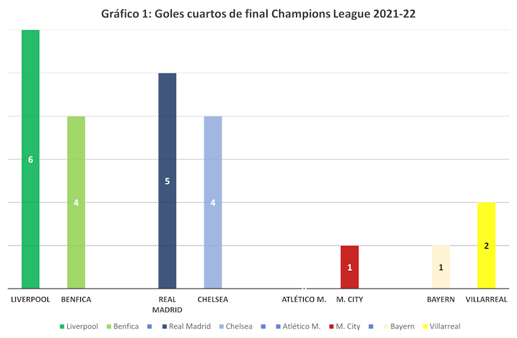 El segundo escalón está formado por Liverpool y Chelsea, con ingresos superiores a los 400 millones. En un escalón por debajo se encuentra el Atlético de Madrid, con ingresos de 300 millones. Finalmente, los dos clubes más pequeños que jugaron los cuartos de final fueron el Villarreal y el Benfica, en niveles alrededor de los 100 millones.
