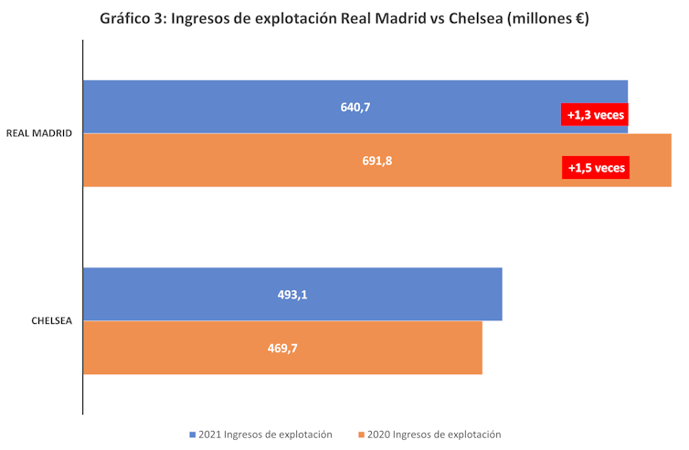 El club blanco se impuso al club inglés por 5 a 4. A nivel económico, la diferencia en ingresos entre ambos clubes (gráfico 3) es de 1,3 veces a favor del Real Madrid. En esta eliminatoria se impuso, por lo tanto, el club con finanzas más potentes.