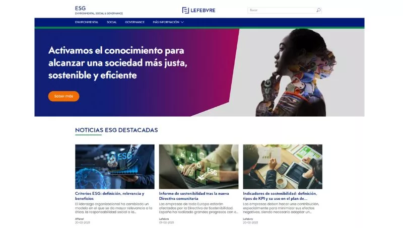El portal web, que parte de la apuesta estratégica de Lefebvre por el ámbito ESG (medioambiente, social y buen gobierno), incluye una amplia selección de contenidos exclusivos del sector publicadas en abierto, entre los que se encuentran noticias, informes sectoriales, ebooks y webinars. Una herramienta útil para mantenerse al día de las novedades y de la actualidad más destacada sobre sostenibilidad y ESG.
