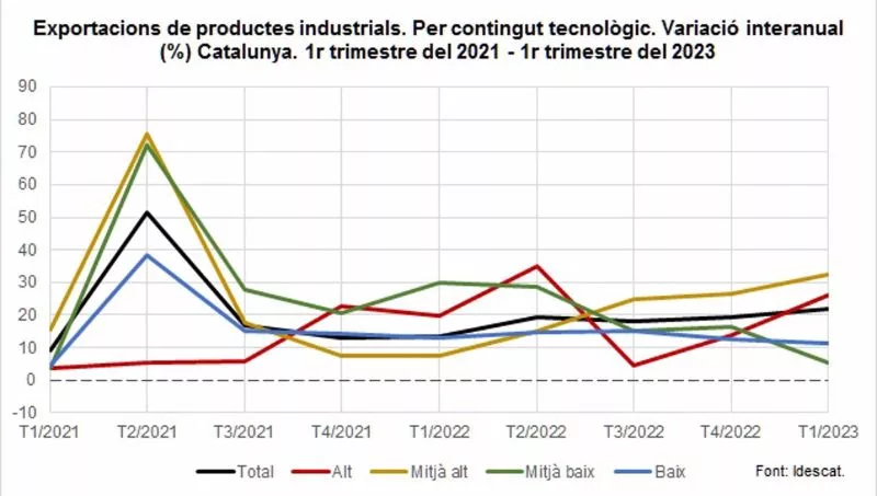Las importaciones de productos industriales del extranjero también han aumentado en todos los niveles tecnológicos en comparación con el mismo trimestre del año anterior, un 9,2%.