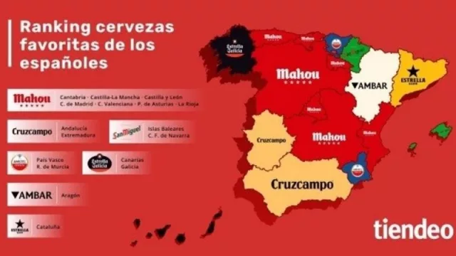 Sin embargo, en cada región domina una de las marcas. Así, el estudio demuestra que Mahou es la que más triunfa en las comunidades de Asturias, Cantabria, Castilla-La Mancha, Castilla y León, Comunidad Valenciana, La Rioja y Madrid.