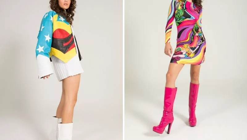 No contenta con reflejar el espíritu de la amazona la diseñadora ha ido un paso más allá, y ha retratado también a su alter ego Diana Prince y los osados modelos que lució durante los años 60 que se ven reflejados en el Wonder Psychedelic Dress y en el Monsters Stretch Dress. Es más, no se puede hablar de una heroína sin hacerlo de sus enemigos, y en el caso de Wonder Woman pocos hay más importantes que Cheetah quien también está presente en esta colección de ropa en los Cheetah Mom Fit Jeans y en la Wonder Woman & Cheetah T-Shirt.