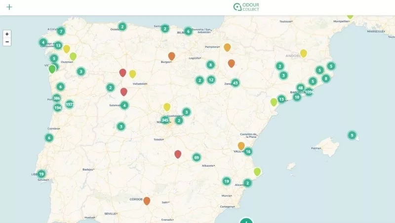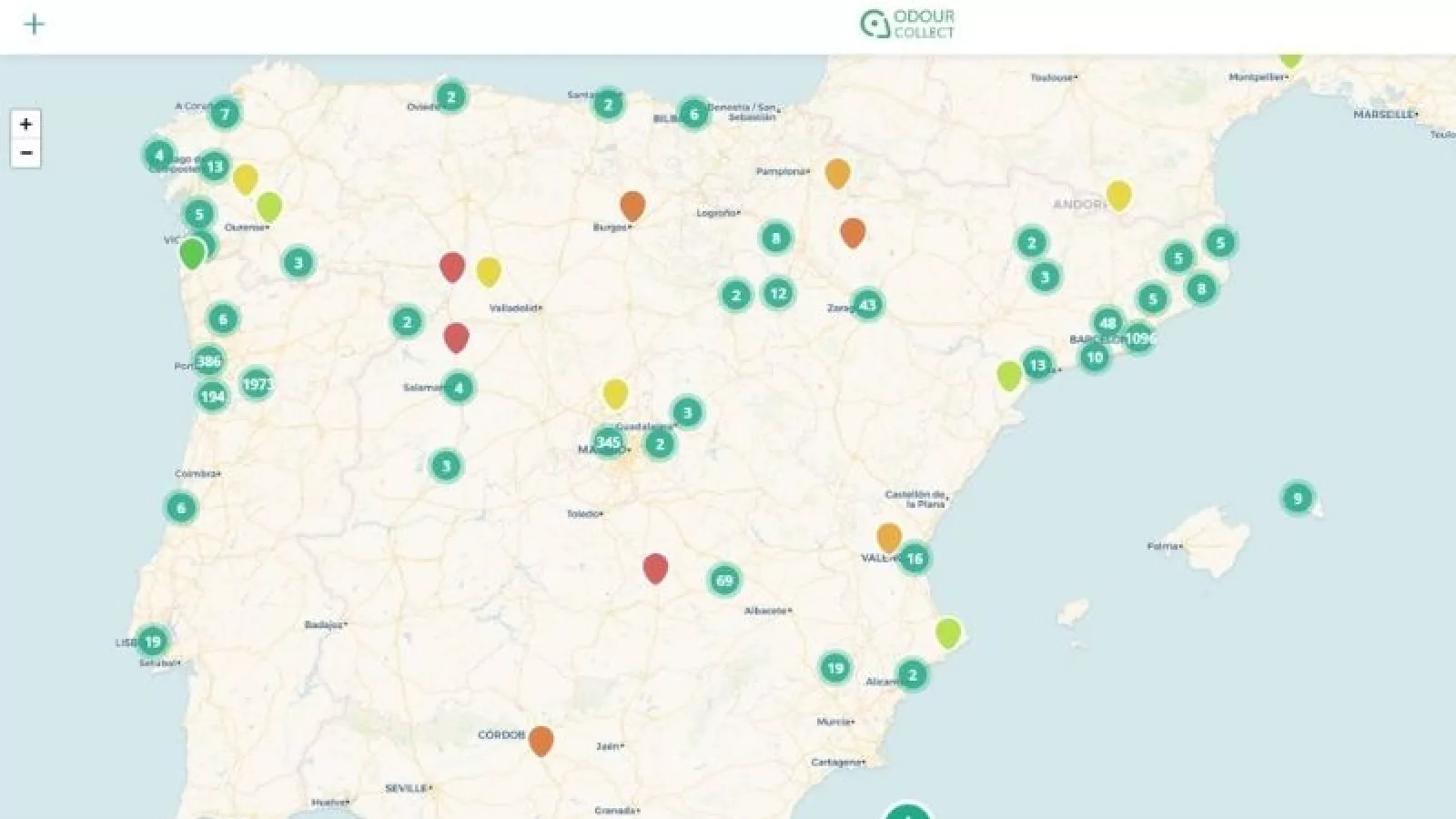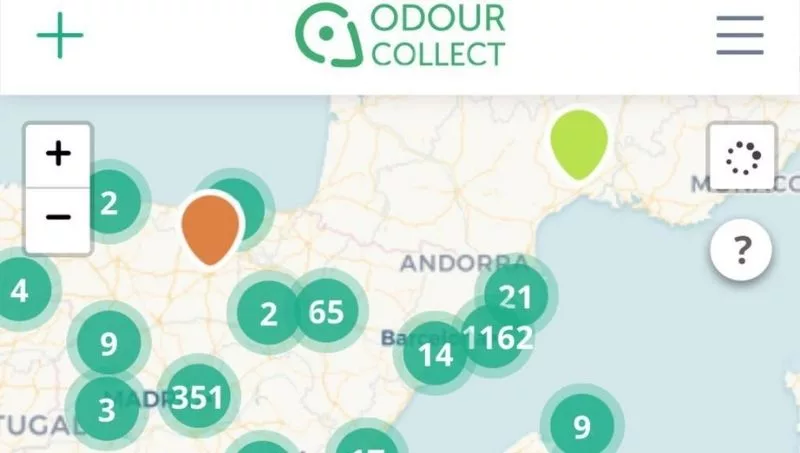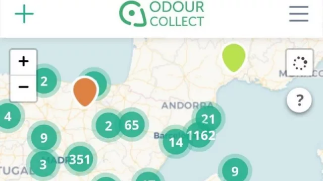 Este proyecto de ciencia ciudadana llega a la gente a través de una aplicación (OdourCollect - https://odourcollect.eu/) que permite informar de malos olores y su intensidad para ir trazando un mapa “de calor”. En la captura de pantalla de esta app se ve claramente que la zona de Barcelona es -por lejos- la que más reportes de malos olores presenta.
