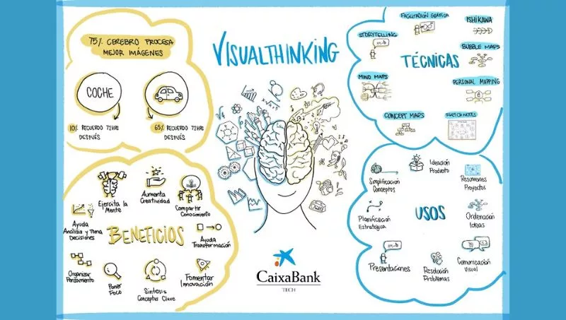 Las diferentes técnicas de visual thinking están resultando especialmente útiles en el análisis y toma de decisiones, por su capacidad de sintetizar conceptos clave, compartir conocimiento con los equipos, focalizar, conceptualizar y organizar el pensamiento. Además, la técnica del pensamiento visual se ha revelado de gran ayuda para potenciar la innovación y la creatividad.