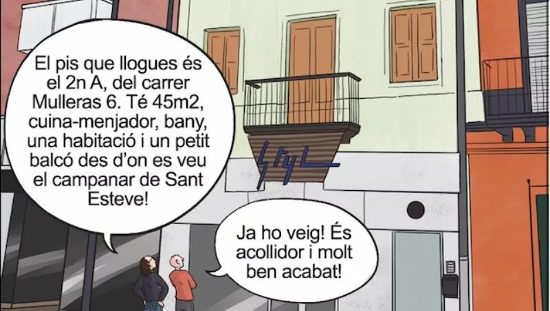 -Pensé que un contrato típico va en contra de todo lo que representa Fem Nucli. Así que, ¿cómo puedo hacer para plasmar sus valores, también, en sus relaciones legales con los inquilinos? Y a partir de ahí fui pensando hasta dar con el formato del cómic. El cómic permite personalizar las escenas, representar sus pisos con todo lujo de detalle. Además, gracias a un lenguaje sencillo, aporta la transparencia tan buscada con sus clientes.