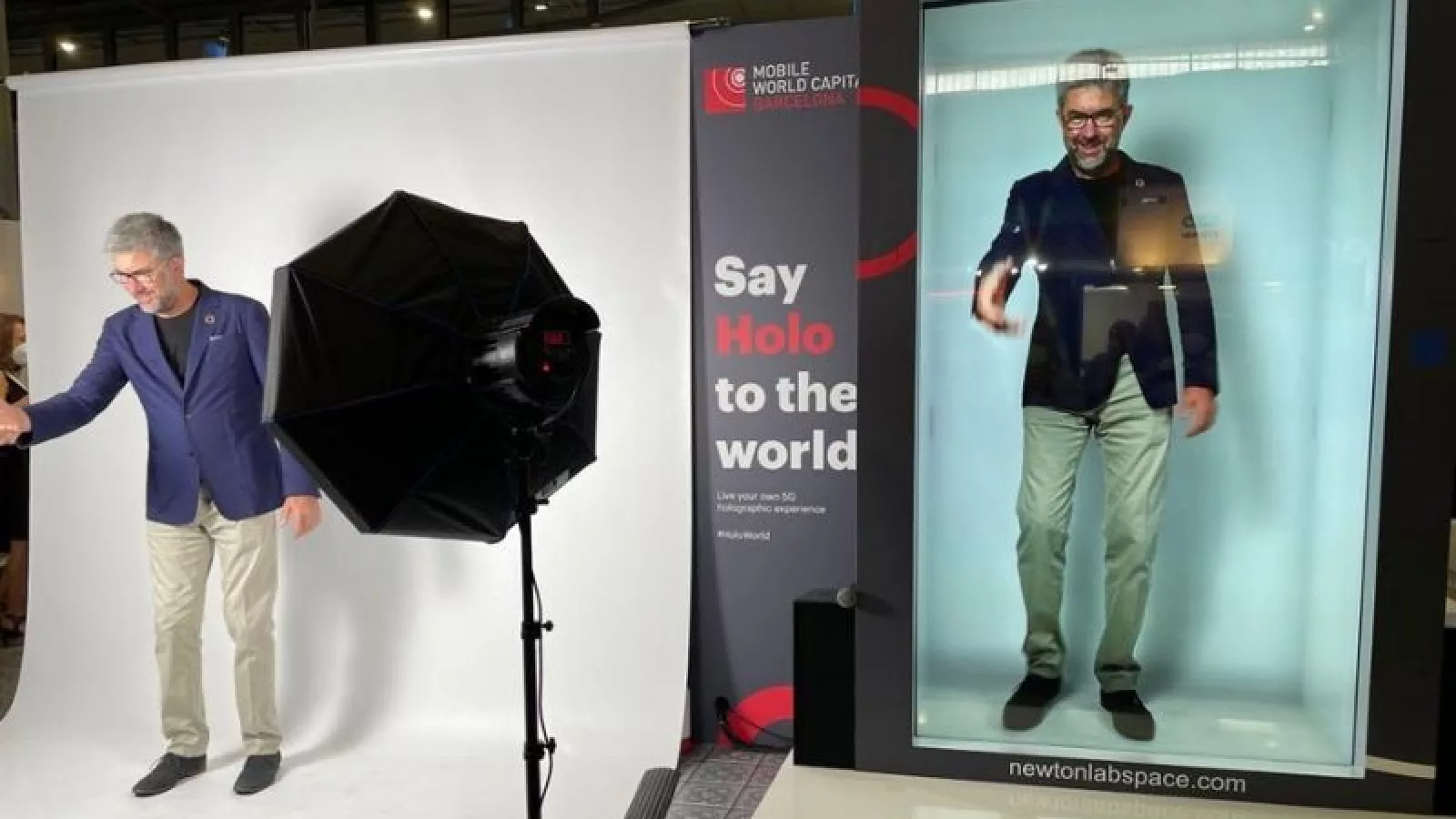 Un entusiasta Carlos Grau, CEO de Mobile World Capital Barcelona, mostró en cuerpo presente lo madura que está esta tecnología de holograma que viene a revolucionar el mundo del entretenimiento, las presentaciones empresariales y -seguramente luego- las comunicaciones entre personas.