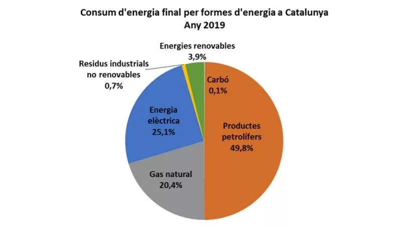 En cuanto al consumo de energía final (es decir, la energía que consumen los usuarios finales), en Cataluña en 2019 se consumieron 14.446,7 ktep, un 49,8% de los cuales fueron productos petrolíferos, un 25,1% energía eléctrica y un 20,4% gas natural. En el periodo 2014-2019 se constata una tendencia al crecimiento del consumo de energía final, que se debe fundamentalmente al incremento de la demanda de combustibles para el transporte, en especial para la aviación.