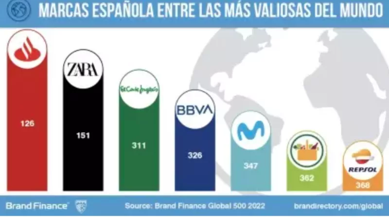 En conjunto, las siete marcas españolas suman un valor de € 52.600 millones, un 4% más que en 2021. Aunque empiezan a recuperar el valor perdido en 2021, tienen aún un largo camino que recorrer, según el análisis, hasta alcanzar de nuevo el valor que las marcas españolas aportaban al ranking en 2020 (59.302 millones, un 12,7% más) y 2019 (75.952 millones de euros, un 44,4% más).