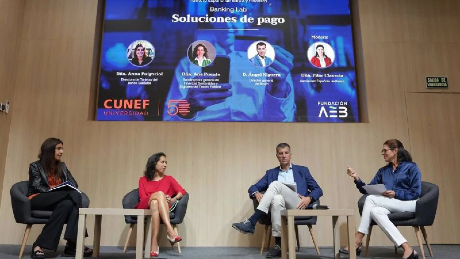 La jornada ha congregado a la subdirectora general de Finanzas Sostenibles y Digitales del Tesoro Público, Ana Puente; el director general de Bizum, Ángel Nigorra; y la directora de Tarjetas del Banco Sabadell, Anna Puigoriol, en una mesa redonda moderada por la asesora de Pagos de la Asociación Española de Banca (AEB), Pilar Clavería.