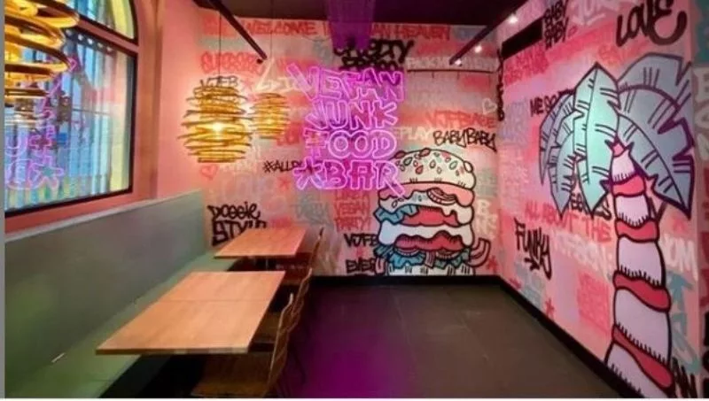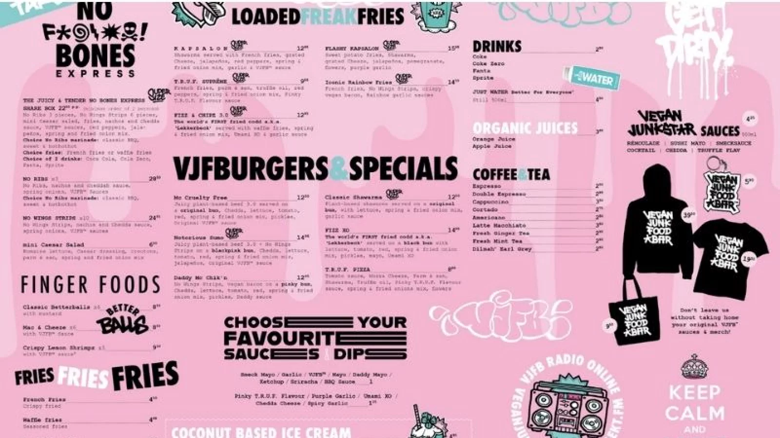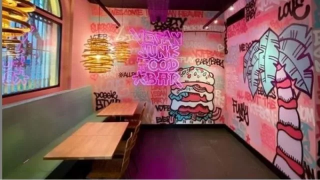 Su diseño urbano y su estética rompedora se percibe nada más entrar al local con unas paredes que de bien seguro que muchos habéis visto por Instagram. Su página web y sus redes mantienen este estilo futurista y sobre todo distinto a lo que estamos acostumbrados a ver en otros locales. Hamburguesas, fingers, fish and chips, patatas fritas, sin duda su carta no tiene nada que envidiar con cualquier restaurante de comida rápida y además… Todo vegano.