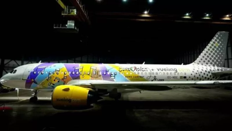 Vueling, con la colaboración de Ogilvy Barcelona, ha personalizado uno de sus aviones con la imagen de Eurovisión. La aerolínea, perteneciente a IAG, ha incorporado la imagen del festival con un vinilado con motivos de notas musicales en la cubierta de uno de sus aviones Airbus A320NEO.