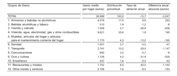 Según la última EPF publicada (2020), los hogares más pobres dedican a la alimentación el 22,1 % de su renta frente al 12,8 % de los hogares más ricos. En cuanto al renglón Vivienda (que contempla los consumos de agua, electricidad, gas, etcétera), los hogares más pobres dedican el 44 % frente al 31,7 % en los ricos. Estos son los dos grupos de gasto que explican mayoritariamente las subidas de precios en el IPC.