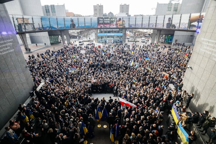 Concentración de apoyo a Ucrania ante el Parlamento Europeo el 1 de marzo de 2022. European Union / Eric Vidal
