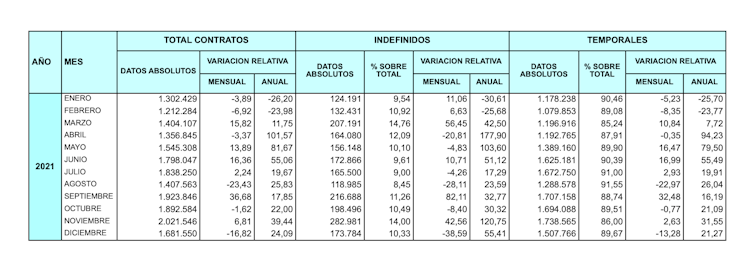 Aquella reforma, no obstante, tenía aspectos mejorables. Uno de ellos, el principal de la reforma que se acaba de aprobar, era el de la excesiva temporalidad de la contratación. En España, aproximadamente el 90 % de contratos laborales que se firmaban todos los meses eran temporales, según los datos del paro registrado.