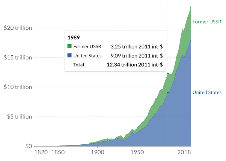 Para los especialistas, fue esta estrategia geopolítica y económica la que llevó a EE UU a derrotar a su poderoso enemigo de la Guerra Fría. No con misiles y ojivas nucleares sino a través de restricciones comerciales y financieras y una escalada brutal del gasto público en armamento.