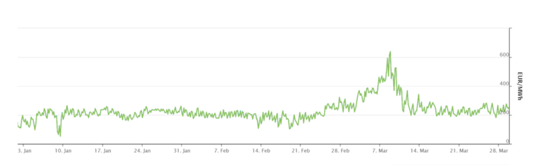 El espectacular aumento del precio desde finales de febrero se explica, sin duda, por la multiplicación del precio internacional del gas que provocó la guerra desencadenada por Rusia (segundo extractor mundial de gas después de EE UU). Aunque el gas ruso ha seguido fluyendo hacia Europa hasta este momento (finales de marzo de 2022), el temor a una interrupción del suministro, fuese por decisión rusa o como medida de sanción económica por parte de la UE, disparó la demanda para acumular reservas y, con ello, el precio.