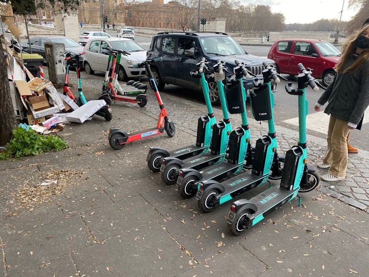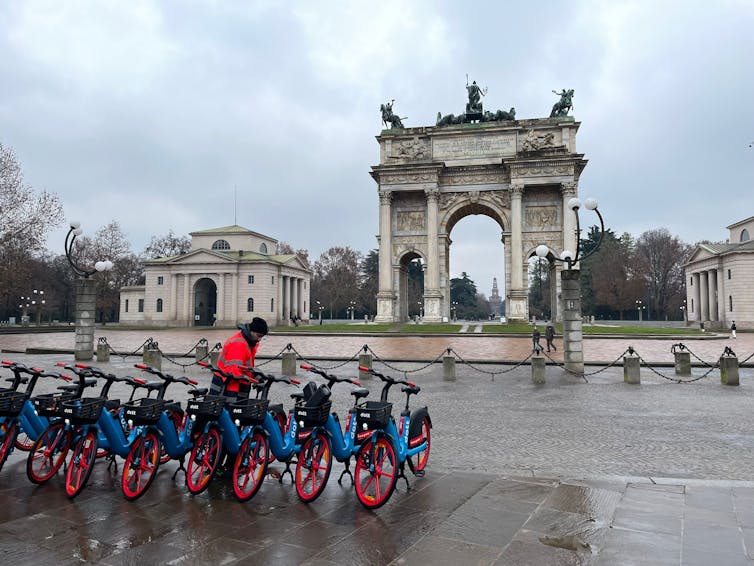 La ciudad también podría, incluso, regular aspectos estéticos. Mientras que los patinetes eléctricos grises de la empresa Bird no desentonan (con el asfalto y la acera) en la Puerta de Alcalá de Madrid, las bicicletas con colores fosforescentes de Dott delante del Arco della Pace en Milán desentonan claramente.