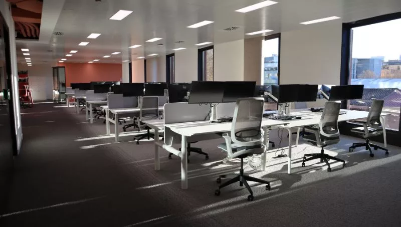 Estas nuevas oficinas están diseñadas para fomentar la colaboración, el bienestar de los empleados y el trabajo híbrido gracias a la instalación de la tecnología más puntera. La infraestructura incluye espacios para el trabajo individual (puestos ergonómicos de trabajo individual, locutorios, salas de silencio); espacios para la colaboración abierta (salas de reuniones formales de distintos tamaños, salas de creatividad, ágora, espacios para sesiones one to one); y equipamientos pensados por y para el trabajador (sala de juegos, comedor, sala de lactancia y sala del bienestar).