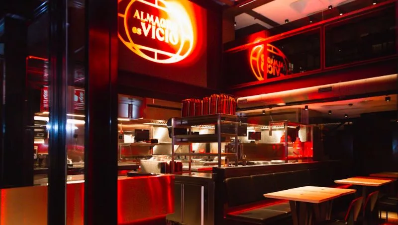 Con ineludibles referencias al mítico Studio 54 de New York City, entrar en el nuevo local de Vicio en la calle Comte de Urgell es vivir una experiencia distinta si de comer hamburguesas se trata. Desde el diseño (con el sello del estudio local External Reference), hasta la cocina a la vista con alto equipamiento tecnológico, algo no tan habitual en el rubro fast food.