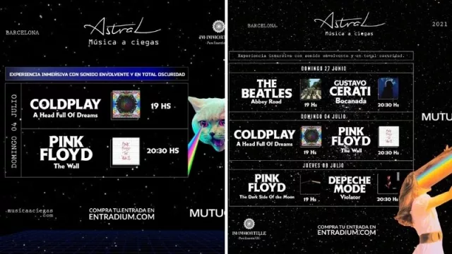 Entre que vamos apurados y que los MP3 degradaron la calidad de la música, muchas veces nos perdemos detalles, sutilezas de grandes discos. Eso propone recuperar Astral, Música a Ciegas, la propuesta que llega desde Córdoba, Argentina, con una grilla que incluye Pink Floyd, The Beatles, Coldplay y Gustavo Ceratti, entre otros.