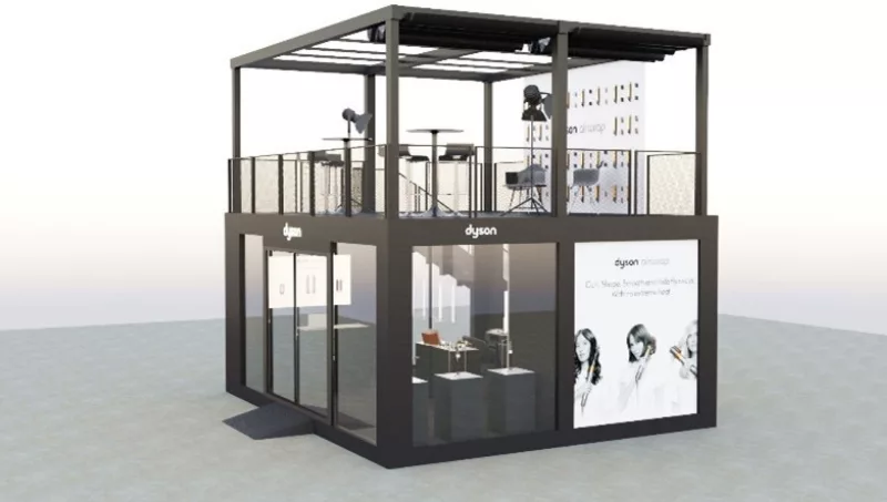 Un cubo de estilismo Dyson, un espacio de dos plantas que acogerá sesiones de peinado gratuitas con el nuevo Dyson AirwrapTM como protagonista.