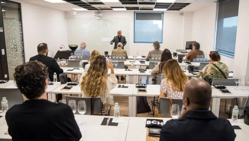 El marco de presentación de este Máster no podía ser mejor: por un lado, las instalaciones de alta gastronomía del Barcelona Culinary Hub y por otro, una sesión de cata y maridaje dirigida nada más y nada menos que por Ramón Francàs, reconocido periodista y responsable de este programa.
