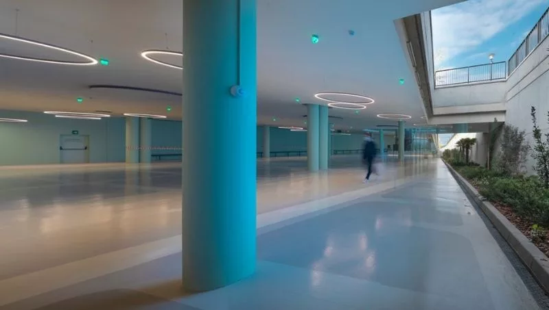 La experiencia para el visitante empieza en el mismo aparcamiento subterráneo, de dos plantas. La luz y ventilación naturales protagonizan el diseño de este espacio, generando continuidad entre la zona subterránea y el exterior. Cuenta con dos ascensores panorámicos con acceso a la nueva zona y a los edificios con servicios para los clientes y un gran mosaico artesanal situado en el lobby realizado con cerámicas naturales.
