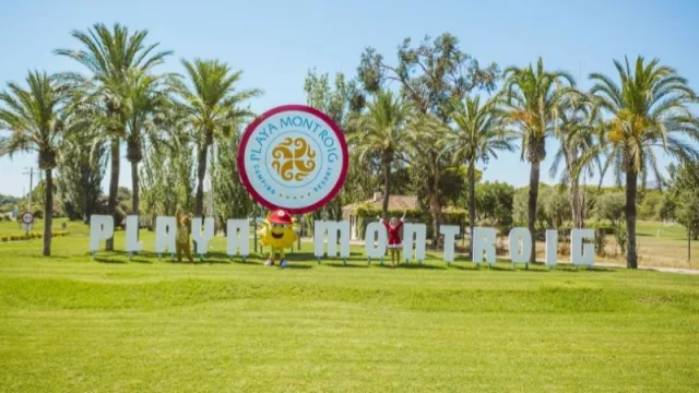 Localizado en la costa, las 35 hectáreas de Playa Montroig cuentan con diferentes piscinas, 1 kilómetro de playa, fitness center, campos de fútbol, ??centro comercial y una amplia oferta de restauración, además de 1.000 parcelas y 300 bungalows con capacidad para a 5.000 personas.