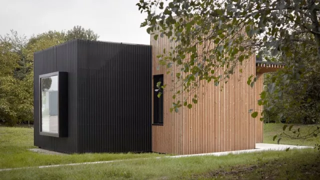 Mimetizada con el entorno rural asturiano, Casa Sela ha sido fabricada en tan sólo 12 semanas y un día de instalación y ensamblaje. Realizada en una única planta lineal de 75 m2, cuenta con salón cocina, los dormitorios y el baño. Un módulo adicional de “homeoffice”, separado por un patio con vistas sobre el valle, completa la superficie construida de Casa Sela. La combinación de la madera y la piedra natural de gran formato ayuda a darle un aspecto industrial y contemporáneo a materiales tradicionales adaptados a un nuevo sistema constructivo y a una estética contemporánea.