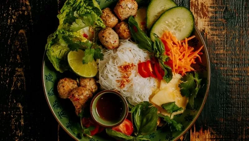 También se ha incorporado a los entrantes una ensalada tradicional común de la zona de Hanoi, la Bún ch? o ensalada vietnamita de fideos vermicelli y albóndigas de cerdo (16€).